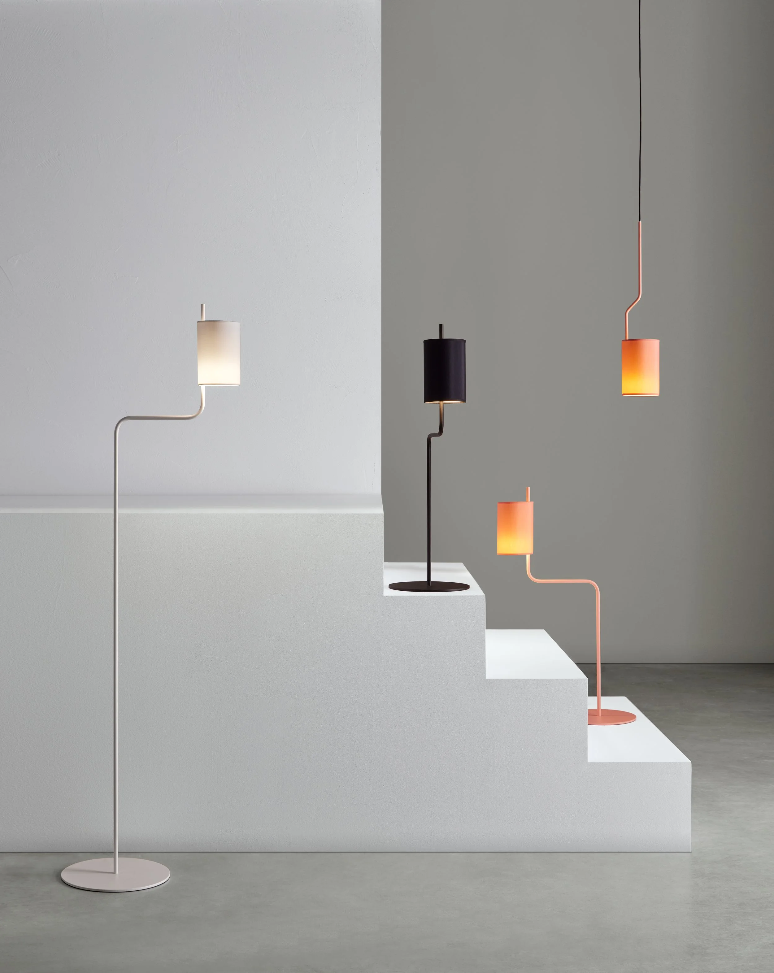 Not only does its name allude to this elegant bird, but above all, its shape remids us of the slender and light flamingo perched on one of its legs. Martín Azúa captures the subtlety of this animal to present the Flamingo family, which includes a floor lamp, table lamp, and pendant lamp; avaliable in three color versions: white, black and the most special one: pink, a color that represents it with all its strength.