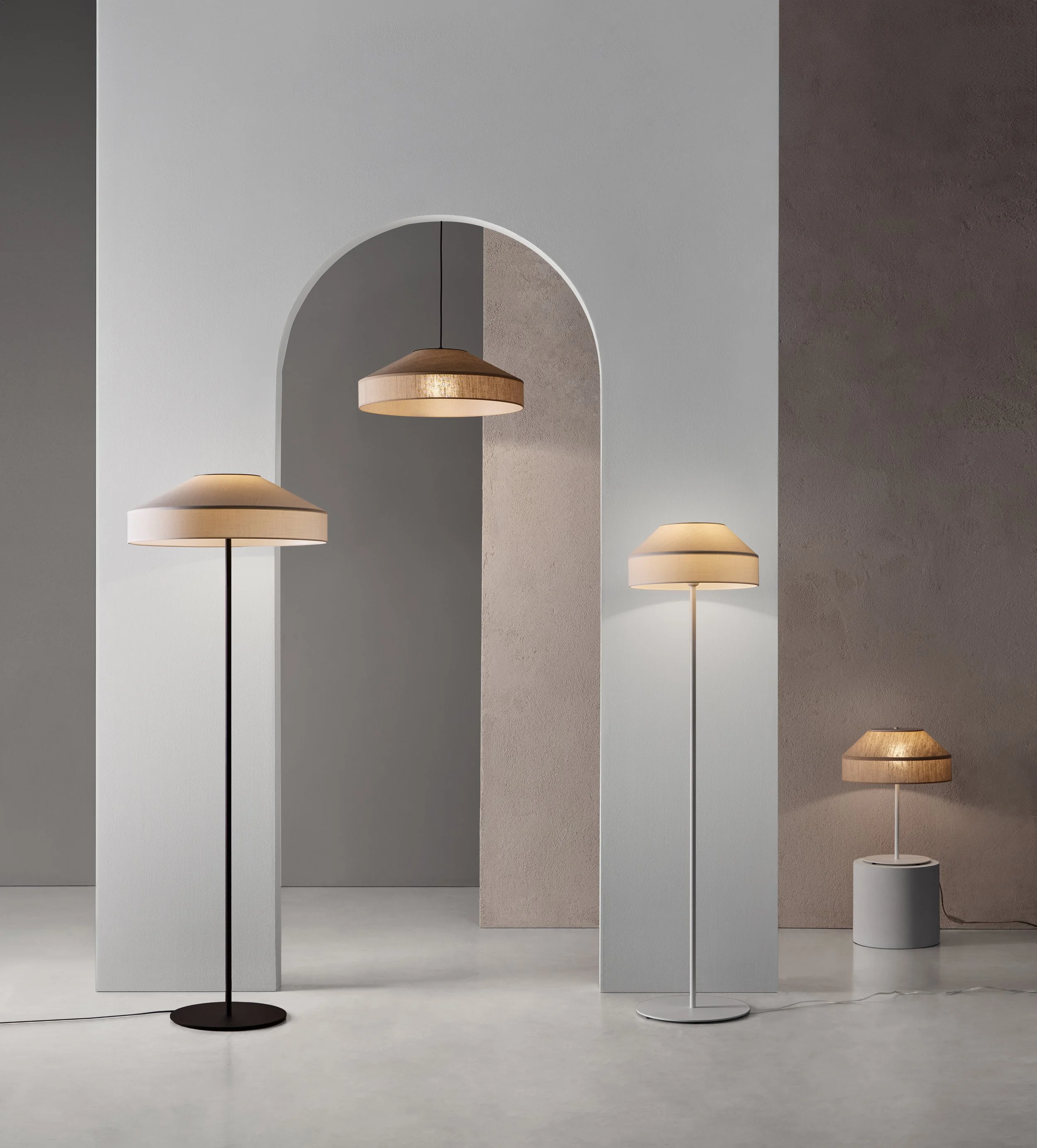 Rizzo is the solution after dressing our Olivia lamp with Sorrento fabric. A light and natural wrap that filters the light, offering a cozy and versatile result. We also provide the option to wrap it with white cotton fabric, as well as choosing between a matte white or black structure.